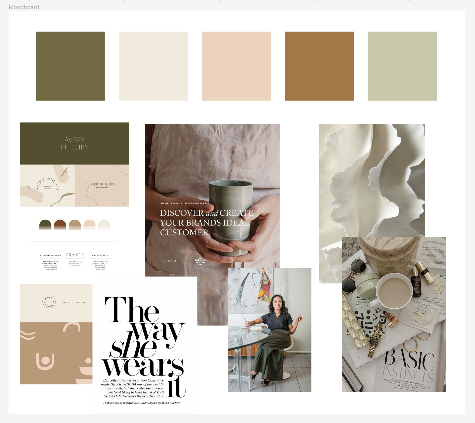 Suche nach Inspiration in Pinterest und gestalte dir in Canva ein Moodboard. Was meine ich hier mit Inspiration? Ich denke dabei an Schriften, Farben, Texturen, Bilder, die dir gefallen. Dadurch näherst du dich dem Stil für deine Website. Du kannst dir von den besten Bildern, dir in Canva ein Moodboard erstellen. Hier zeige ich dir ein Beispiel: