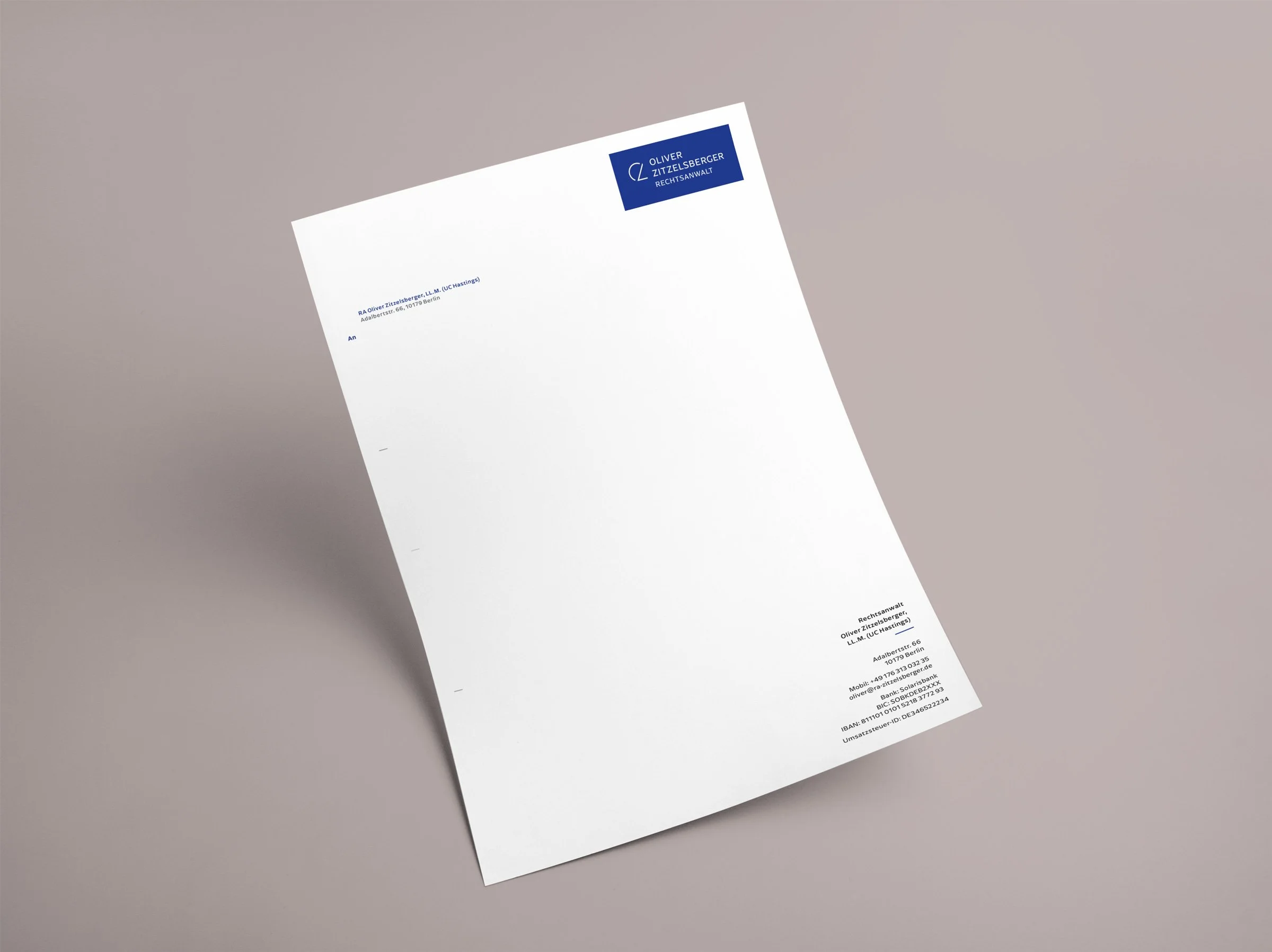 Oliver Zitzelsberger kam mit der Anfrage zu mir, ein Logo, verschiedene Anwendungen und eine Website zu gestalten. Bisher hatte er keine visuelle Marke – wir starteten also bei Null. Einige Vorgaben waren klar: Das Erscheinungsbild sollte modern und seriös wirken, aber ohne klassische Kanzlei-Elemente wie Paragrafenzeichen oder reine Schriftzüge.